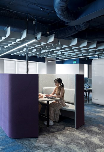 Supported by a variety of team collaboration space styles, quiet booths, lounging areas and phone booths, employees are encouraged to optimise their work performance by engaging with the right space for the task, offering enhanced flexibility.