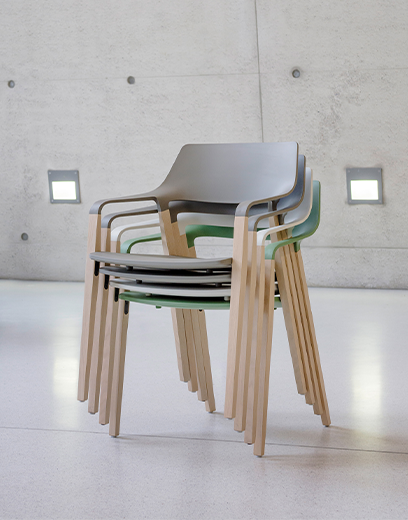 An extraordinary mixture of fine wood and practical plastic speaks an organic, clear design language. Halm is the ideal furnishing solution for all requirements in the hospitality and care sectors as well as many other spaces.