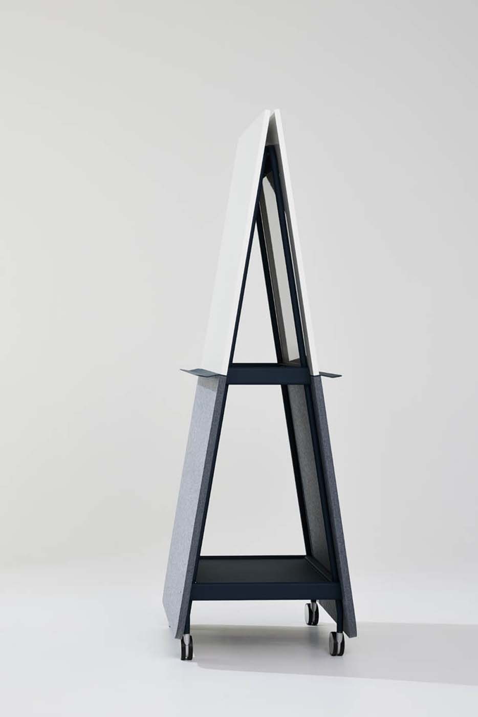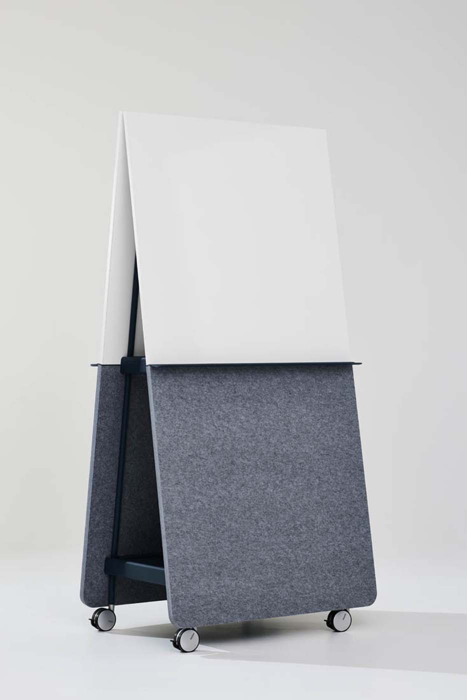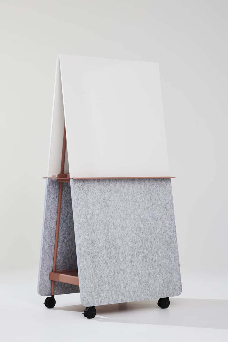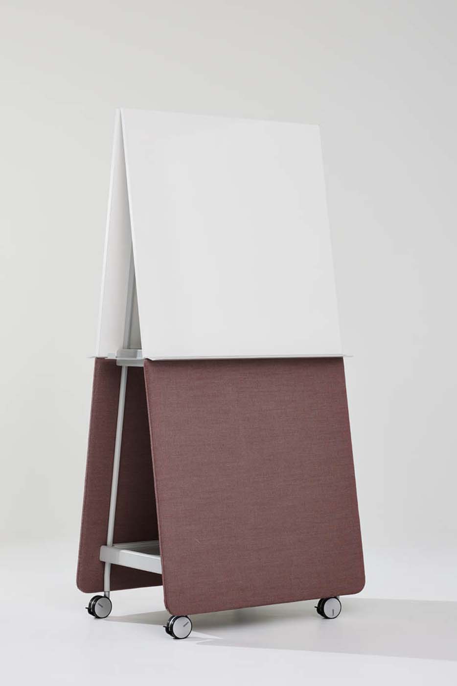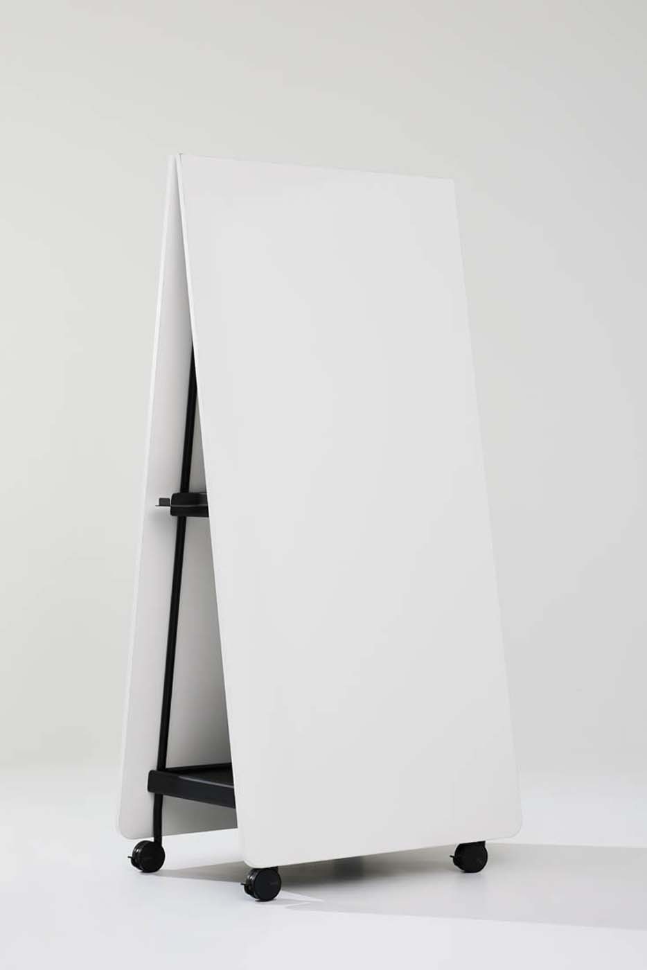 Alpha Space provides a mobile collaborative tool for flexible workspaces. The four optional substrates; whiteboard, laminate, pinnable fabric & sonic board provide a surface for brainstorming and idea sharing, pinning images, and sticking post-it notes. The connecting cross beam has a curved profile which acts as a comfortable pull handle making it easy to relocate around the workplace from one team setting to the next.