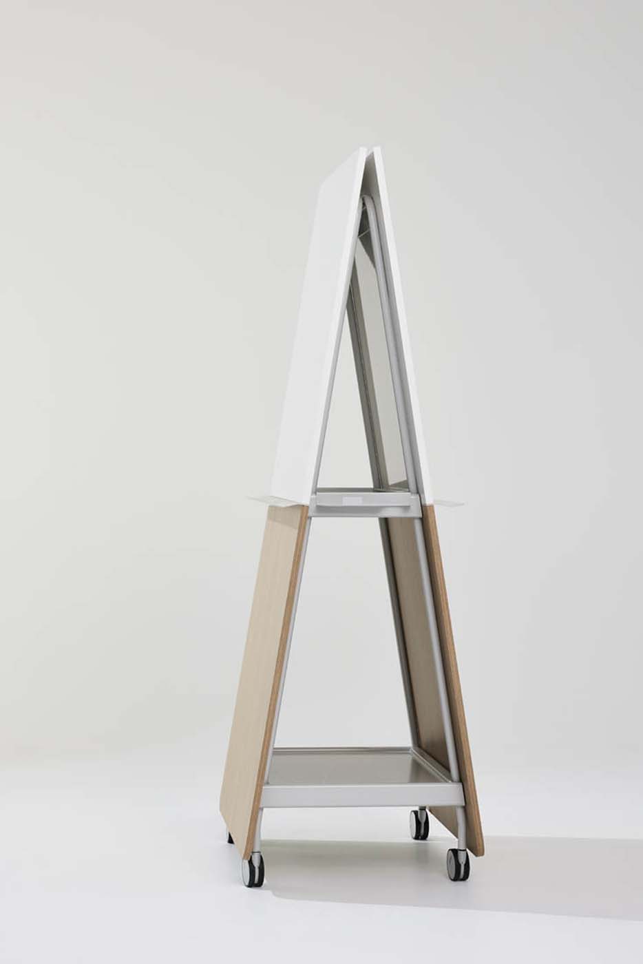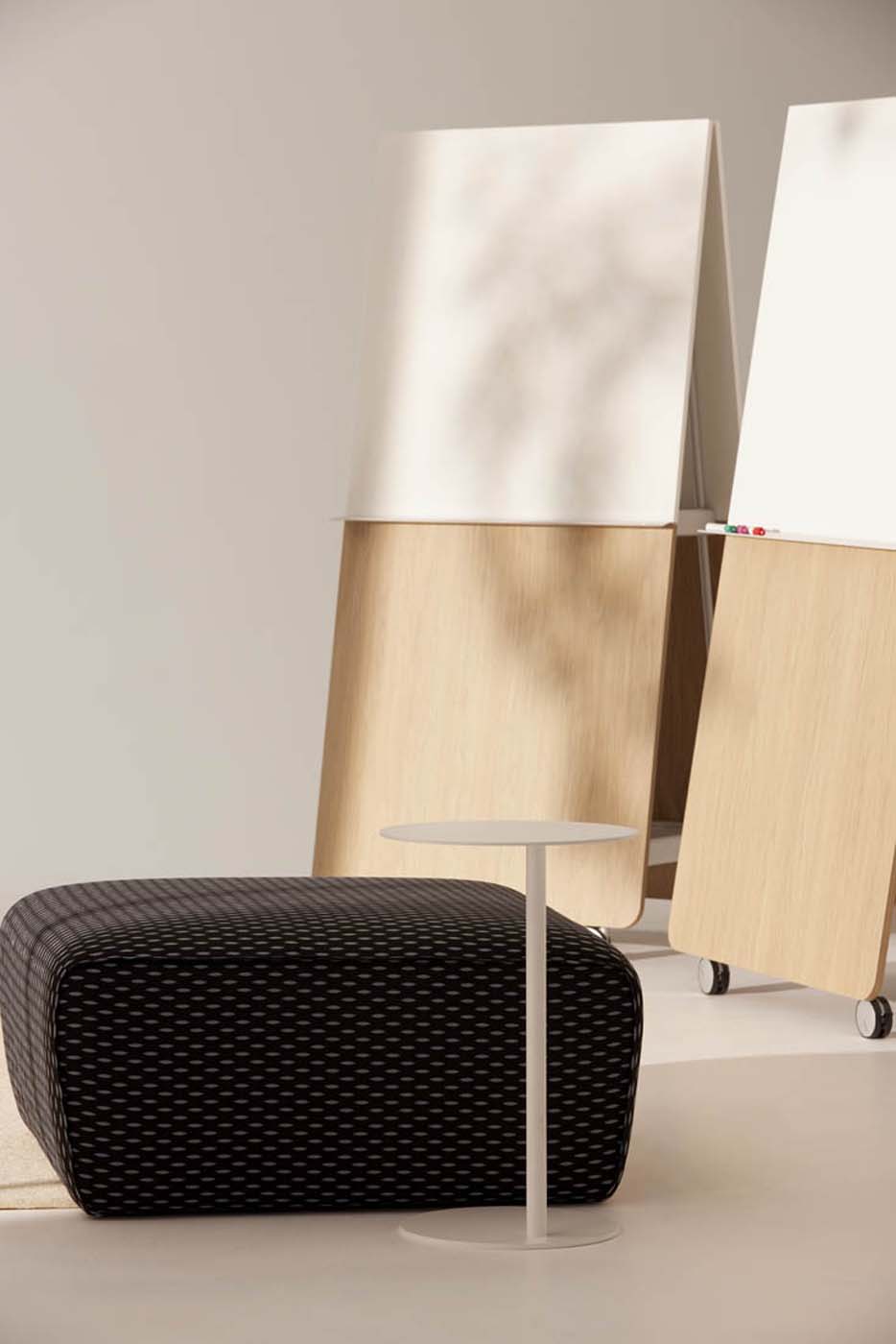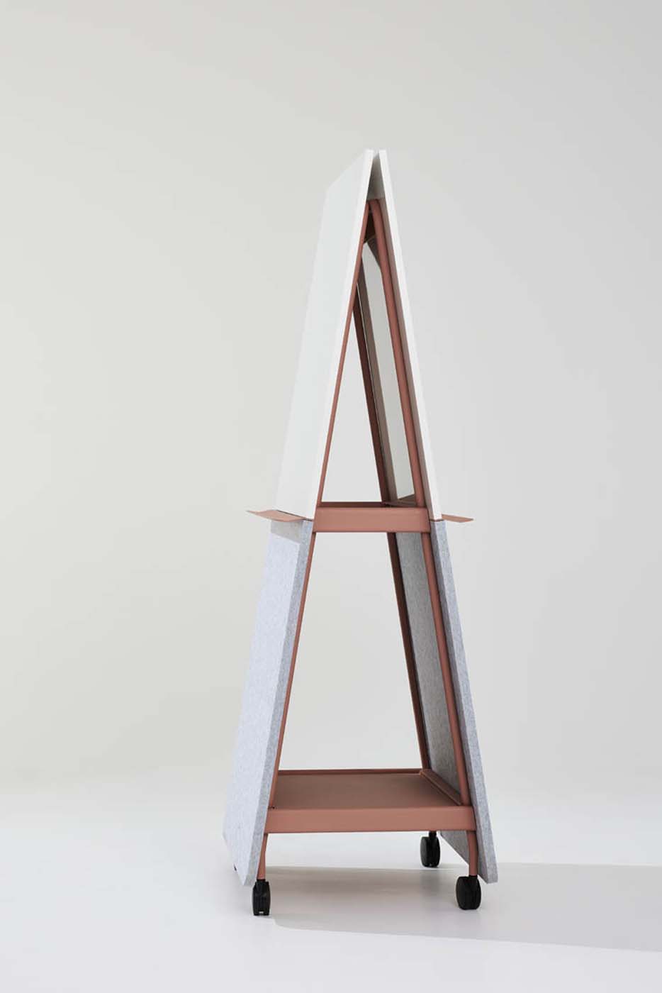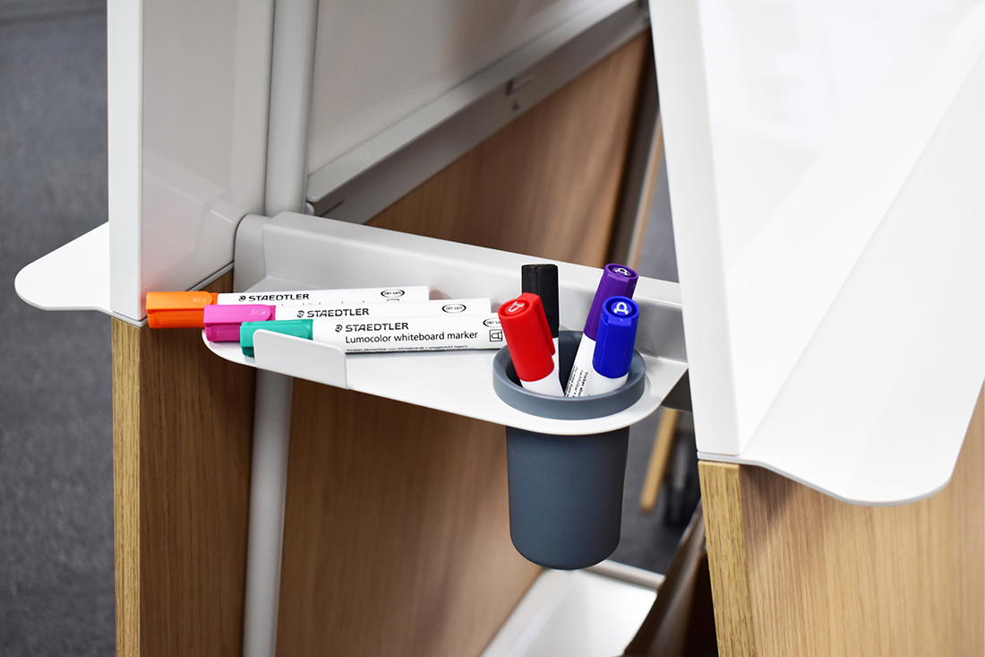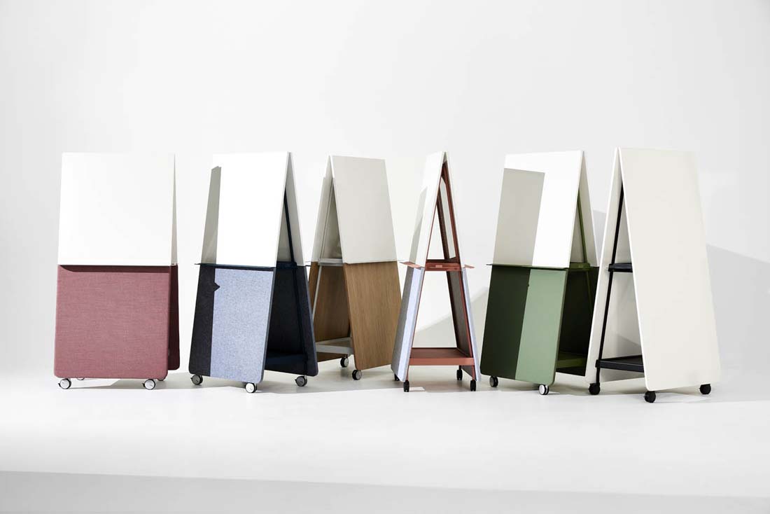Alpha Space provides a mobile collaborative tool for flexible workspaces. The four optional substrates; whiteboard, laminate, pinnable fabric & sonic board provide a surface for brainstorming and idea sharing, pinning images, and sticking post-it notes. The connecting cross beam has a curved profile which acts as a comfortable pull handle making it easy to relocate around the workplace from one team setting to the next.