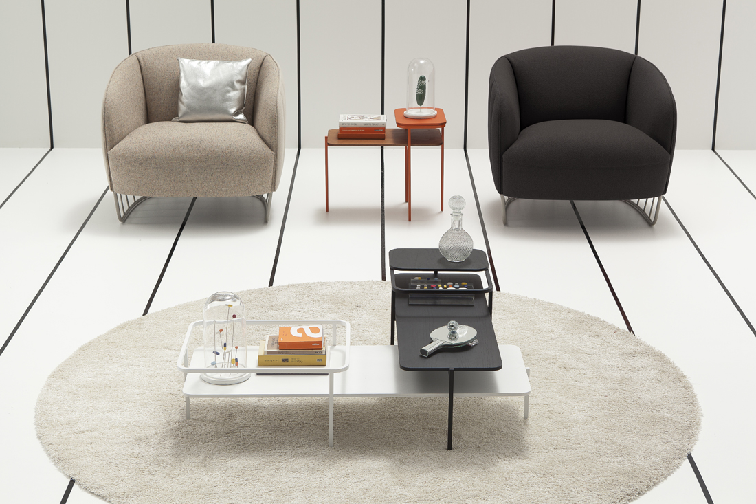 Duplex is the first collection by Sancal with Valencian studio Mut. A small range or occasional tables that have been inspired by the architecture of Mies van der Rohe and Frank Lloyd Wright.