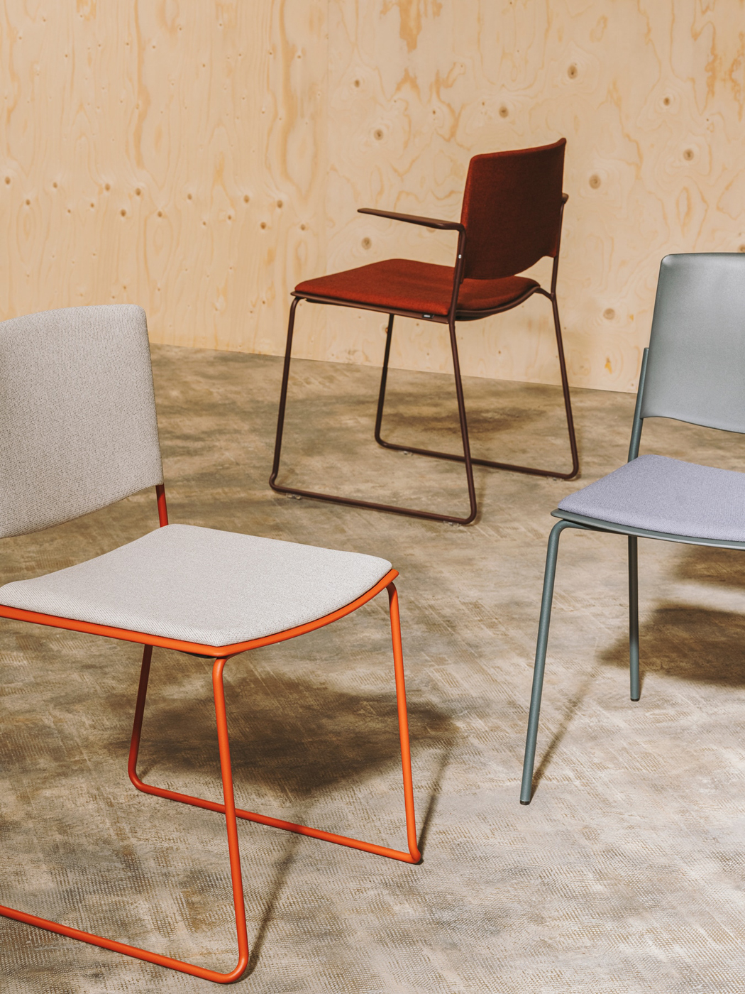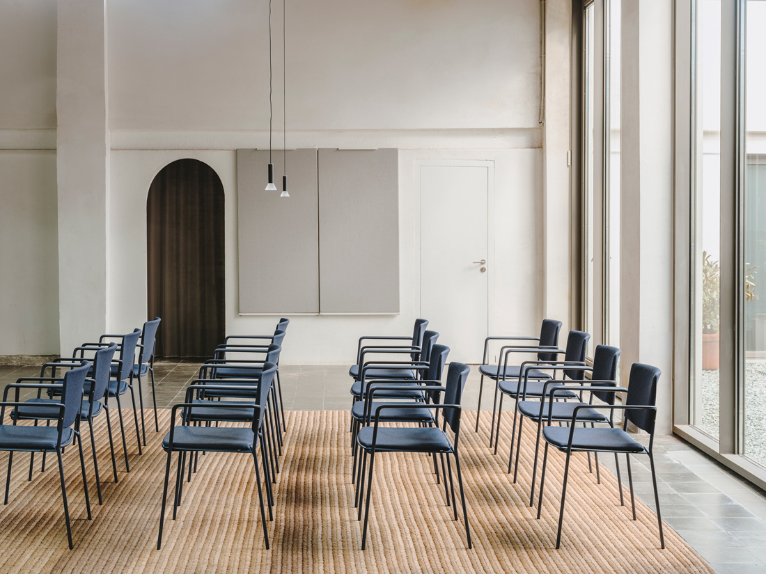 Ema chair is characterised by its great stackability, lightness and functionality.