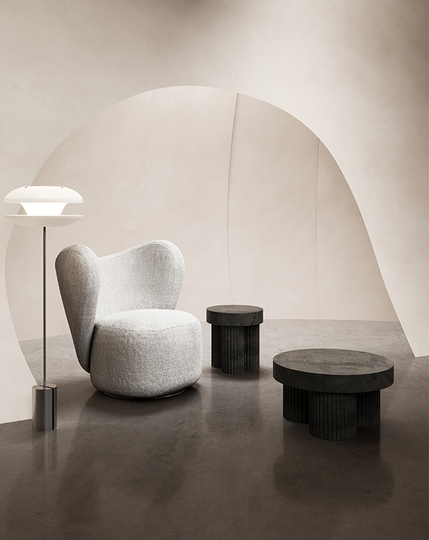 Gear is inspired by Brutalism Architecture from the mid-20th century. The sculptural coffee and side tables are designed as block-like structures, reflecting architectural building components of concrete.