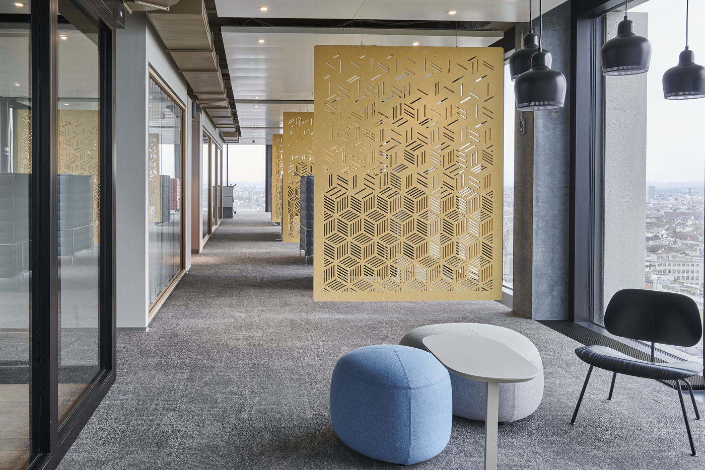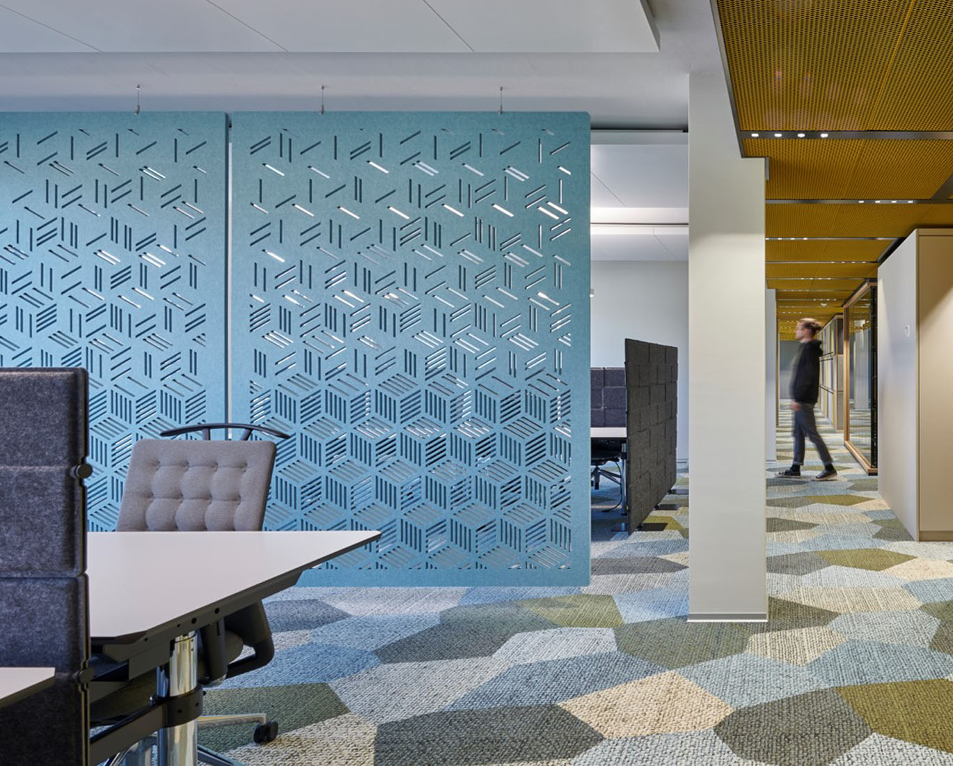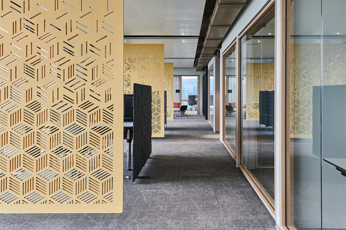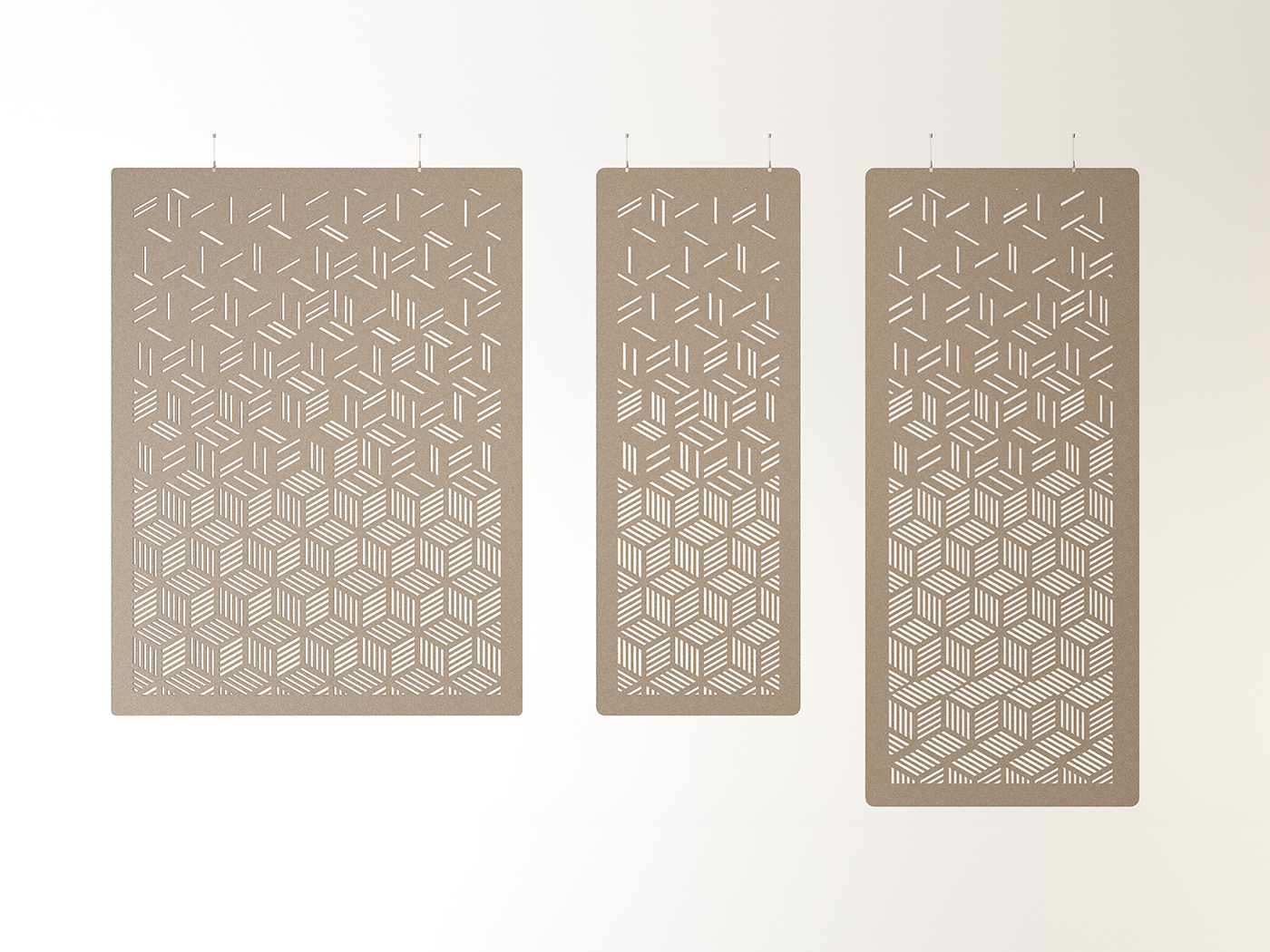 The geometric pattern of Kyvos and the different cut-outs make this room divider an eye-catcher. The provocative design offers acoustic performance and a stylish element in any room.