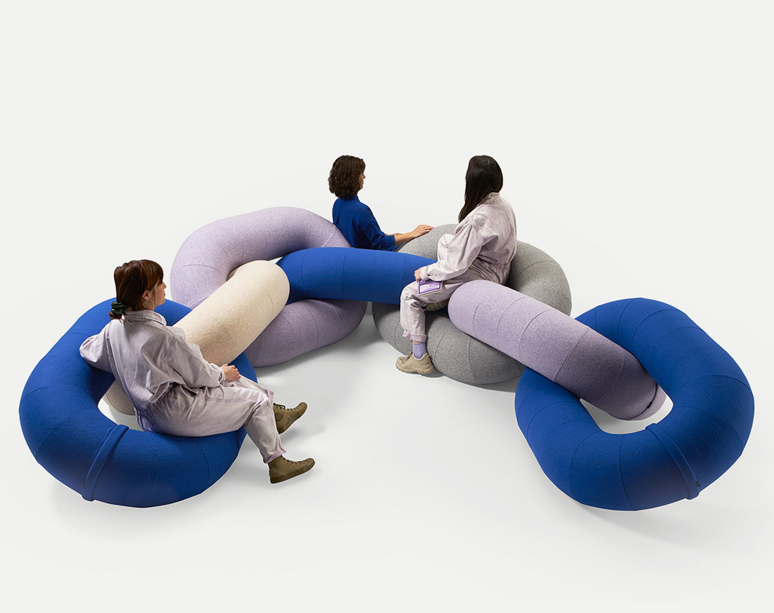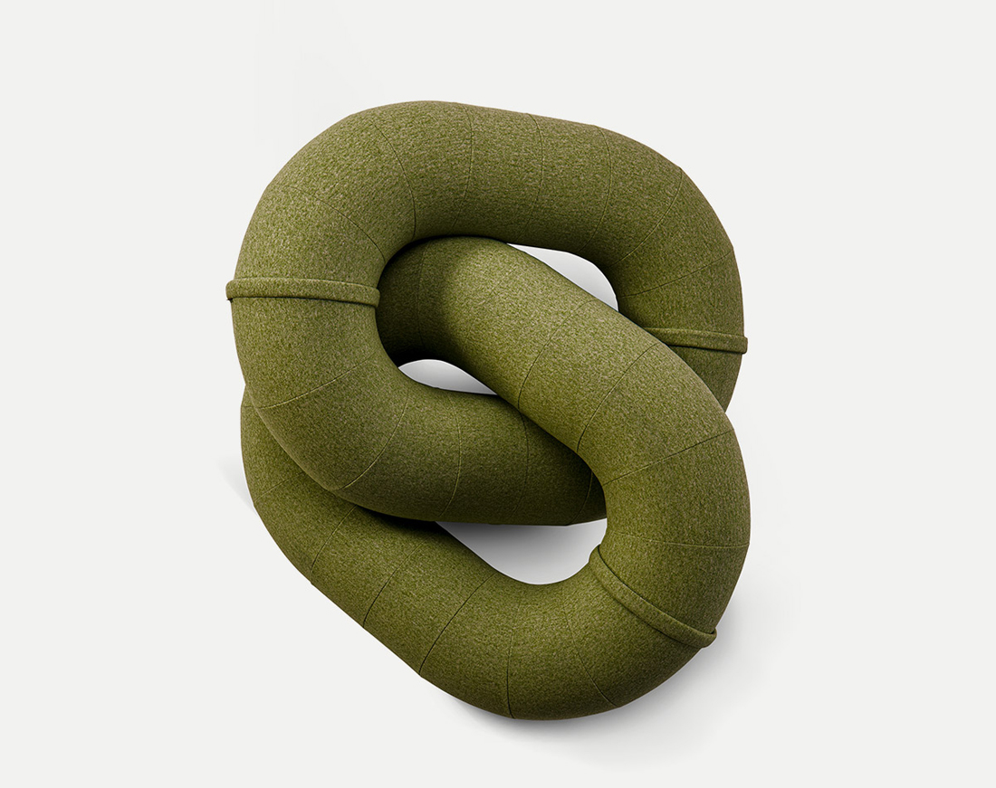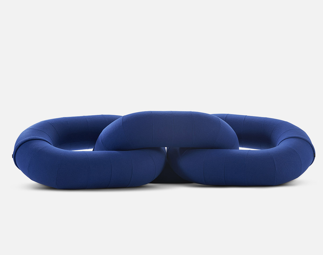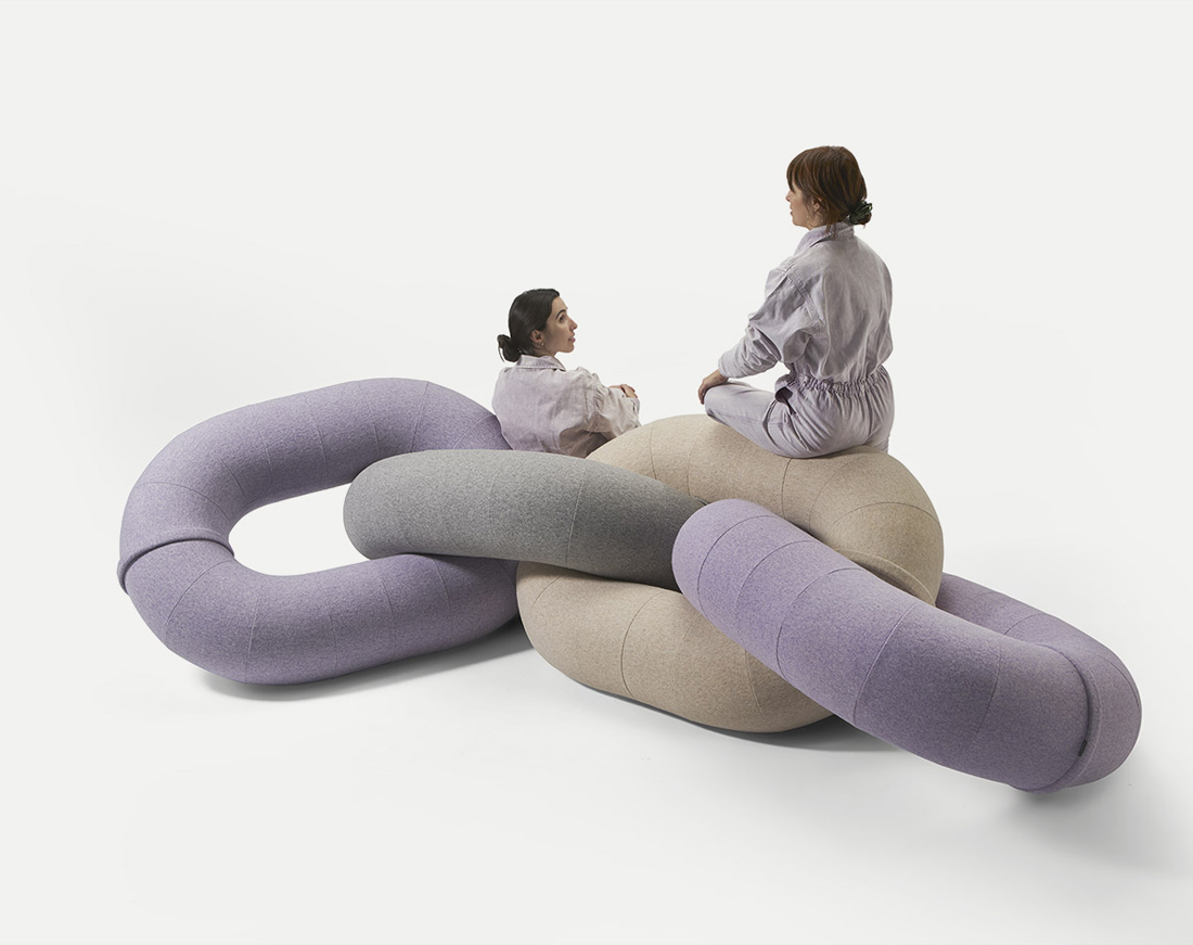 A connected Link to create play on light and shape. Link lounge is designed to be a piece of art when not in use. It is based on the sinuous links of a chain. The scale of the lounge plays a key role, as it can turn an everyday object into a sculpture.