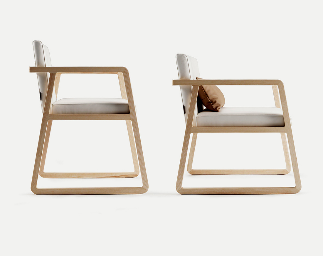 A family of chairs that can be used in dining, lounge and bar settings. The open grain of the solid Ash timber gives warmth and originality to its structure.