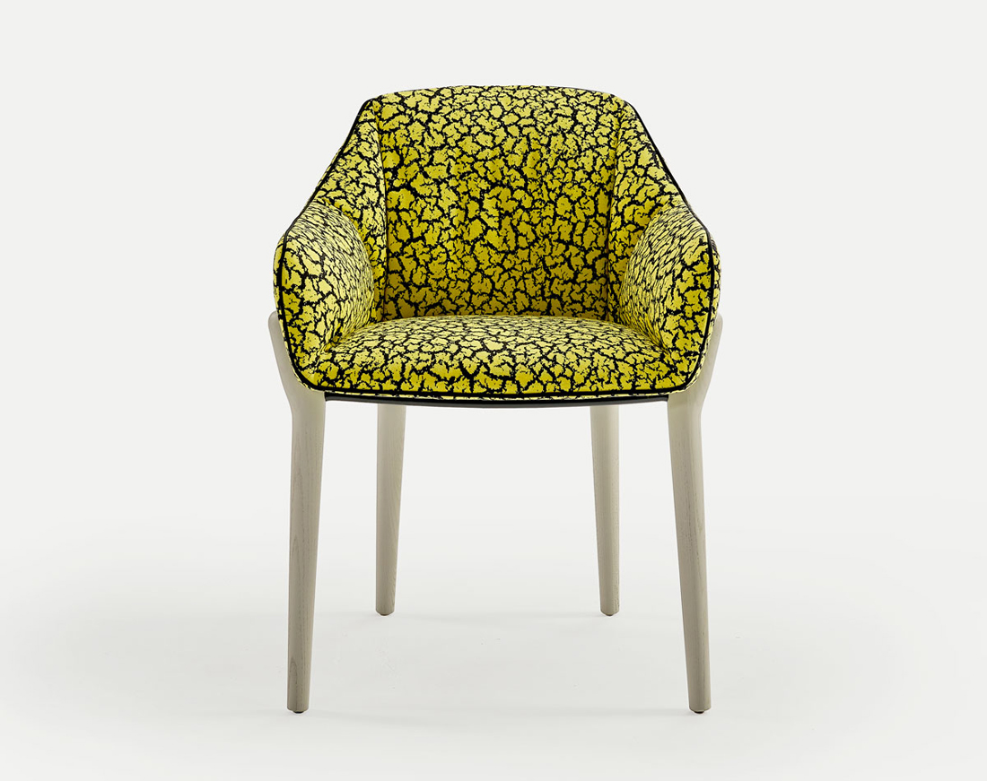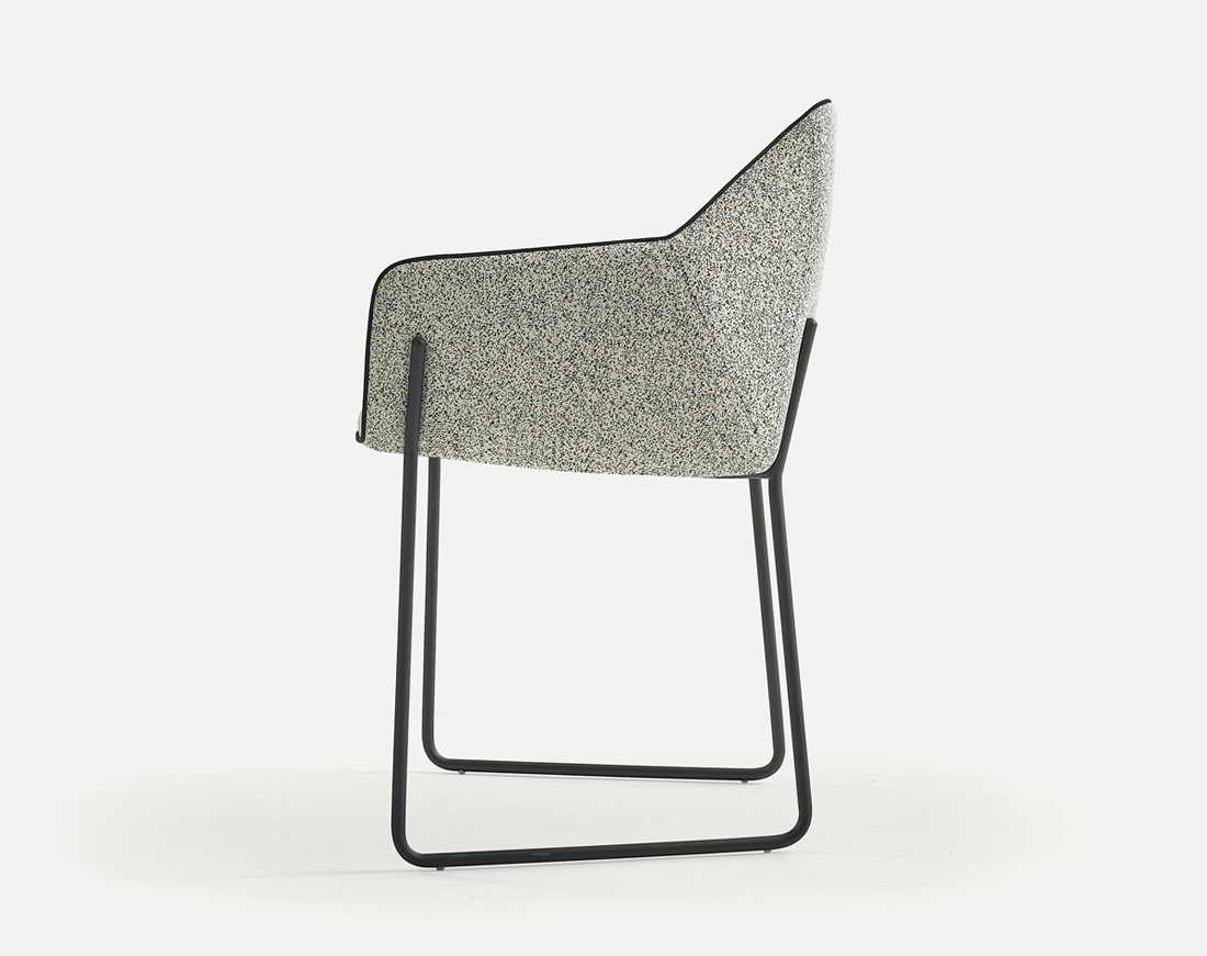 Nido is the Spanish word for nest. A nest is home for a number of species and inspired Rafa Garcia to create this small compact comfortable arm and dining chair. The chairs versatility can be found in four leg options; two in solid timber, metal sled base or lacquered five star.