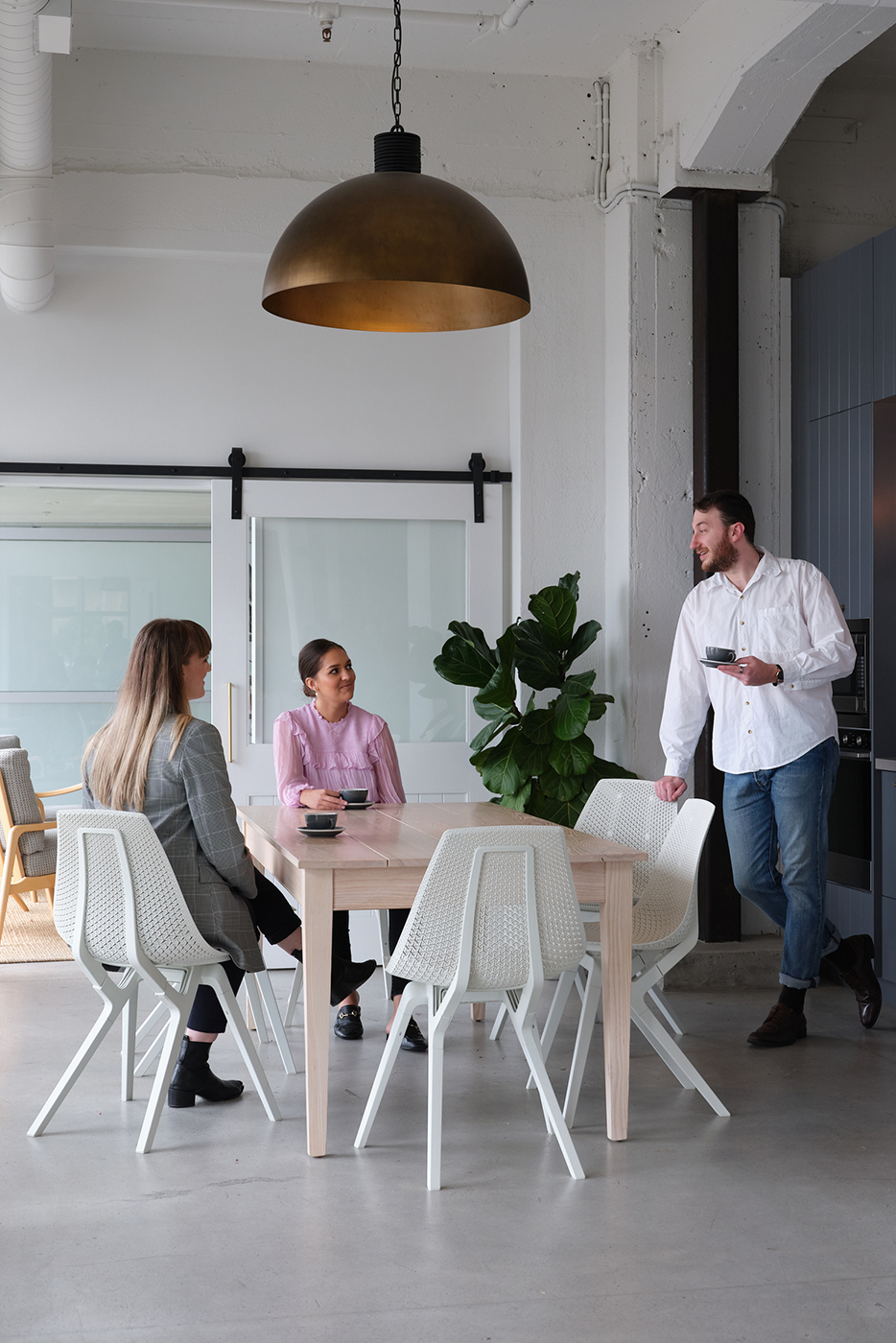 The Noho MoveTM was created from thousands of hours of research and design development. The unique movement promotes healthy postures to support you and your team's activity everyday; from focus spaces to meeting spaces, from individual work to teamwork. From a financial review to coffee and a catch up. Noho MoveTM enriches the experience.