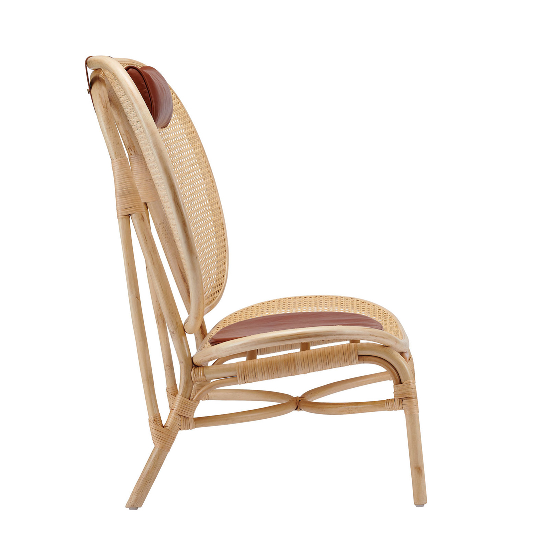 Nomad Chair is a Nordic interpretation of the traditional Moroccan wicker chair. The name is a contradiction between “Nordic” and “Moroccan”, to the characteristic “Nomad”. The large seat and back are made of two molded bamboo frames with inlaid natural French rattan by skilled wicker workers. The back leg runs all the way from floor to top of the back in one piece supporting the iconic shape. The semi-transparent French rattan gives the large surface a light expression and highlights the beautiful construction.