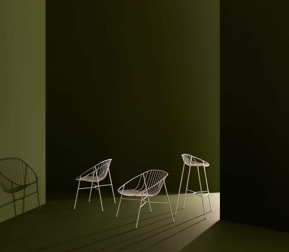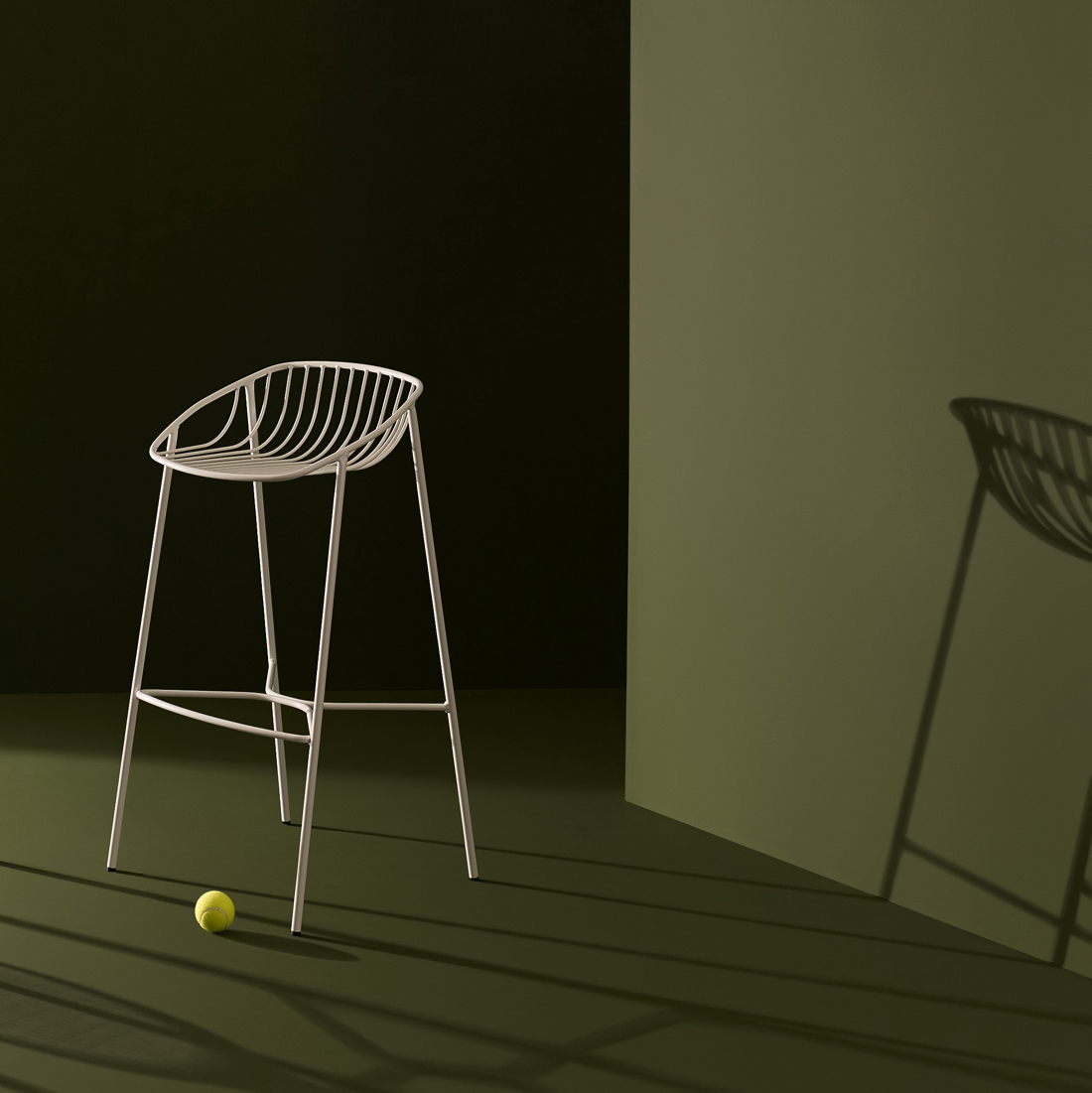 The sculpted seats of Pino stools have been carefully refined to provide a level of comfort not often associated with wire furniture. Suitable for indoor and outdoor environments.