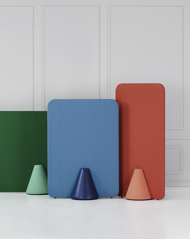 A self-stabilised upholstered screen, Precinct Divide segments spaces within the open-plan workspace. Functional as privacy partitioning and shield from visual distraction or as a mobile wall to create new work environments seamlessly and impermanently.