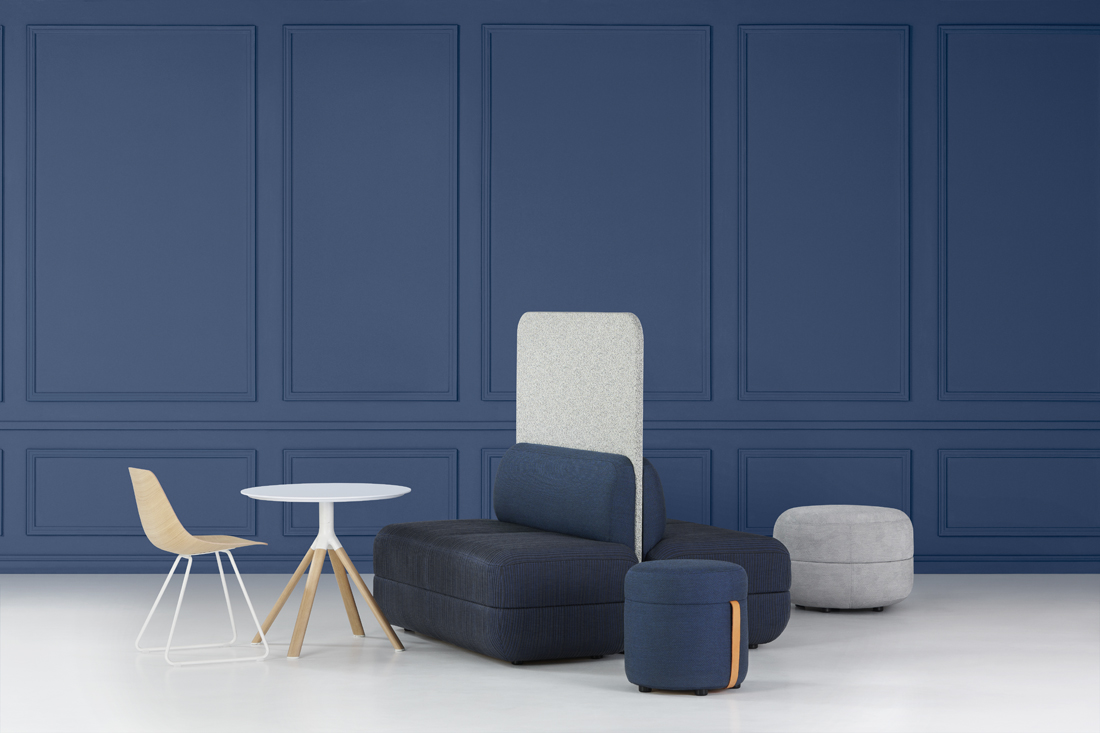 Precinct Lounge Modules offer both standalone comfort seating and, when configured with other collection pieces, a wrap-around alcove that envelops employees in their individual work or in their collaborative meeting. Screens can be added to ensure privacy within a busy environment or to segment and arrange the open-plan space.