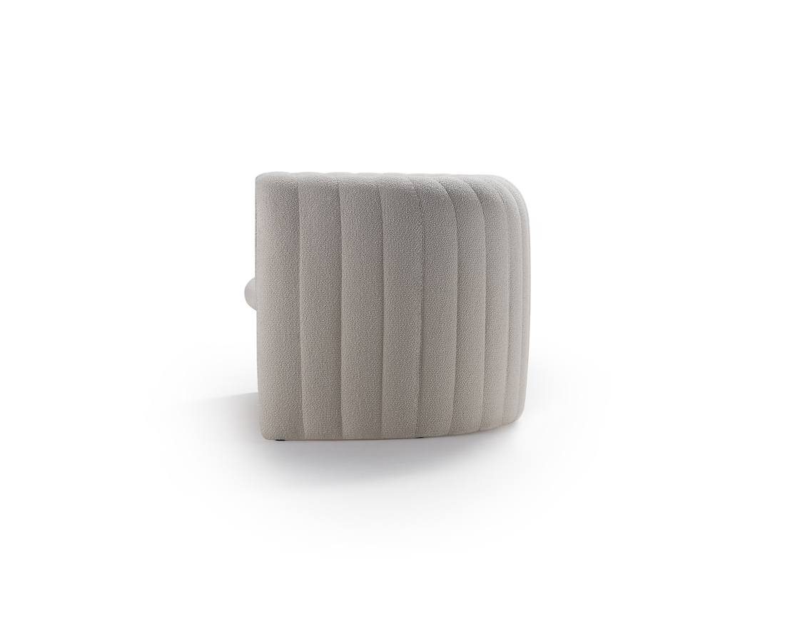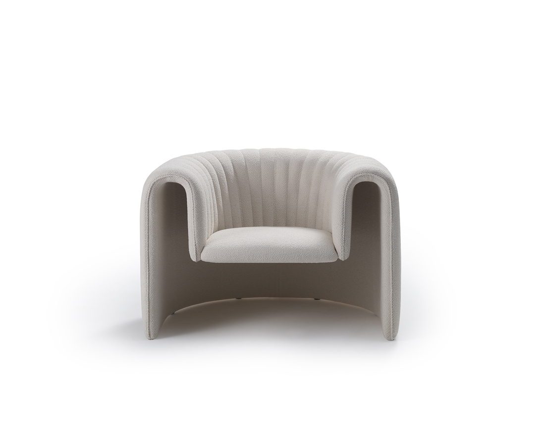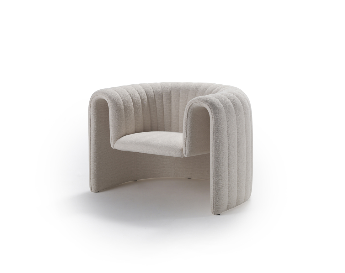 Remnant represents the material that the sculptor might have discarded after creating Core, a different but complementary interpretation of the same form. The product’s technical complexity has been one of the main challenges of this project. Its visual lightness and apparent simplicity are the result of a considerable amount of development, experimentation and engineering. The essence of this design is characterized by the perfect fusion between industrial curiosity to find new constructive forms, the warmth provided by the artisan work of the upholsterer, the elegance of the design and its impeccable details. The subtle and elegant quilting that surrounds both the armchair and the sofa adds texture to an iconic design that can be upholstered in a wide range of fabrics.