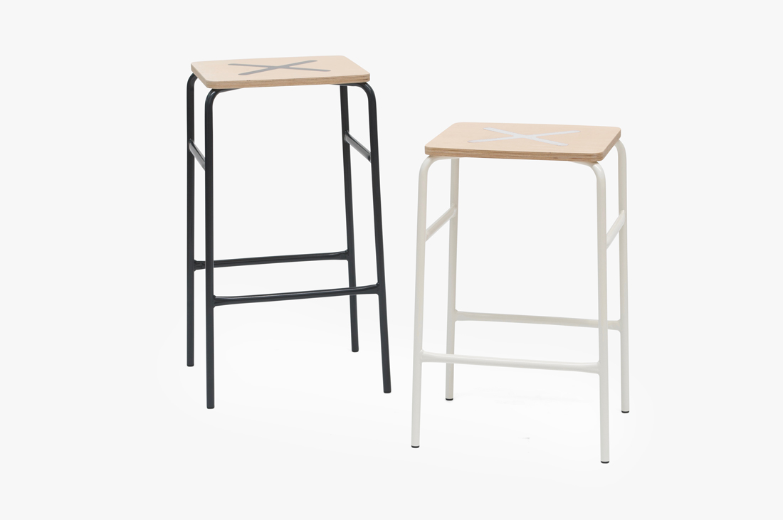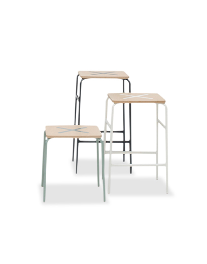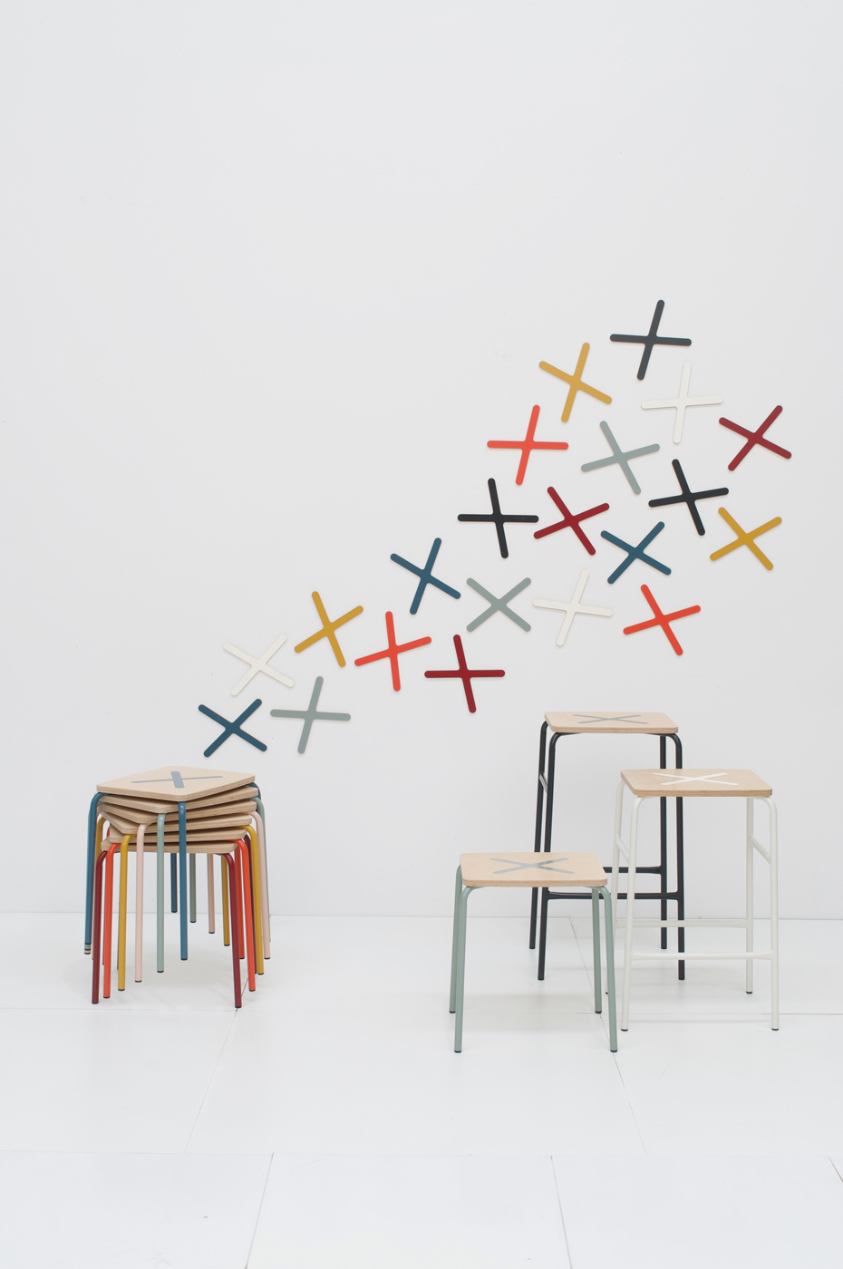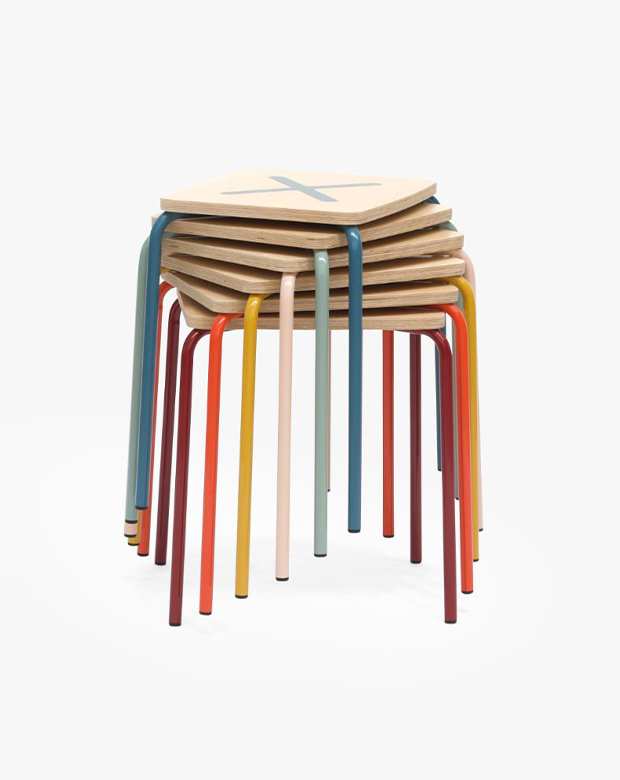 Combining simplicity with a graphic injection of colour, Staple stools imbues the utilitarian seat with new stature.