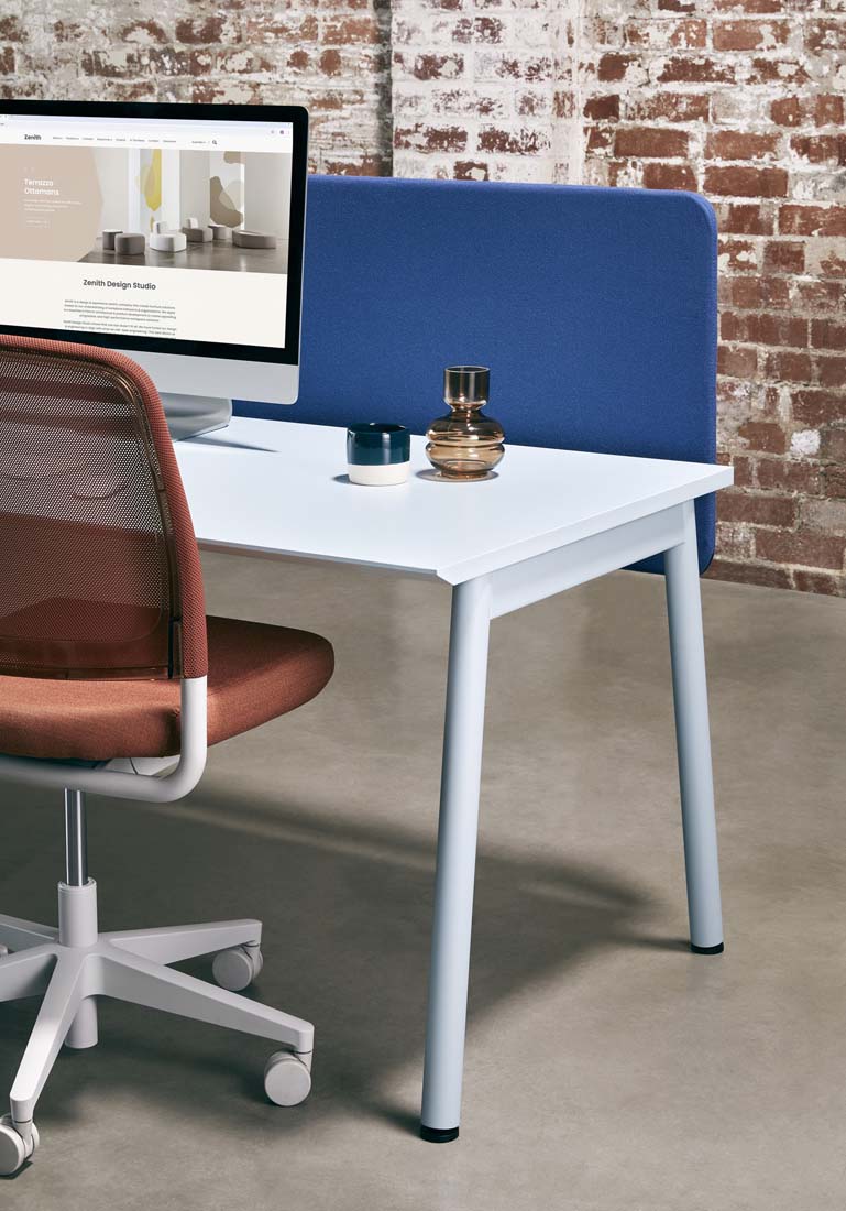 Inspired by the vibrant Teddy Boy subculture, Zenith’s Teddy Workstations feature a round leg and flat foot pad. Available in various configurations, they integrate seamlessly with Zenith’s cable management and privacy accessories.