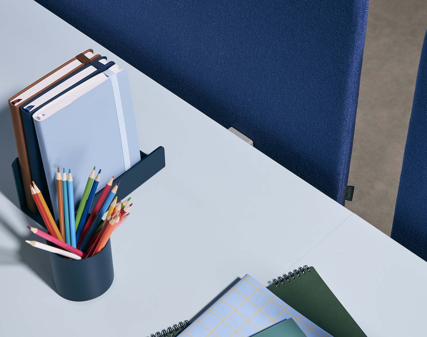 Work Shapes are a family of desk utilities made from textured powder coated aluminium and steel elements. Deriving size from a simple grid system, items nest, align, adapt and expand with ease across a workspace. Available with a caddy, container, pen cup and set of 3 dividers.