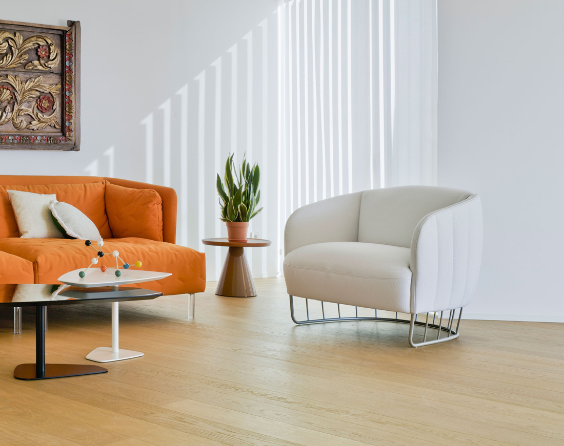 A reinterpretation of the Marie Antoinette vanity chair inspired by Spanish wine barrels.