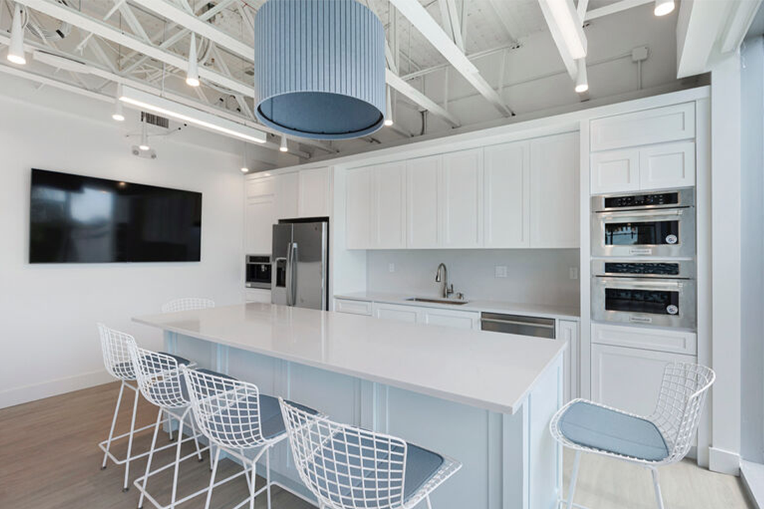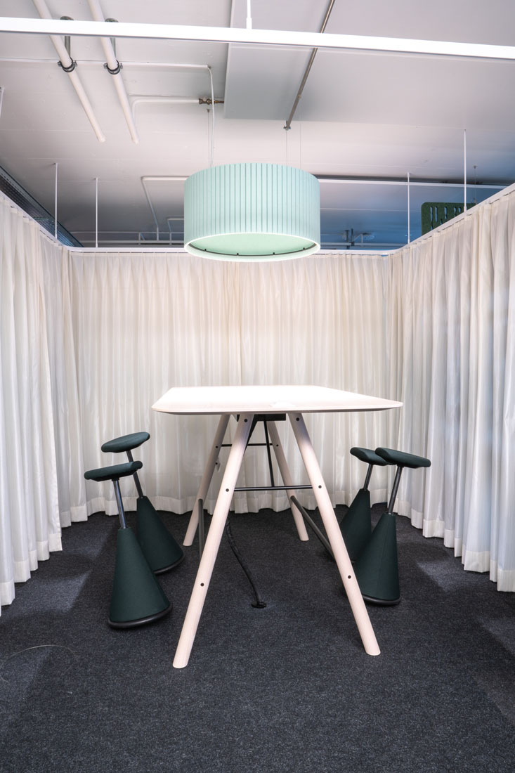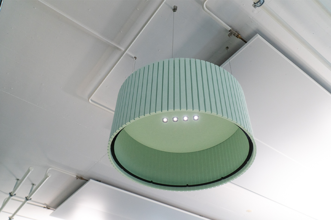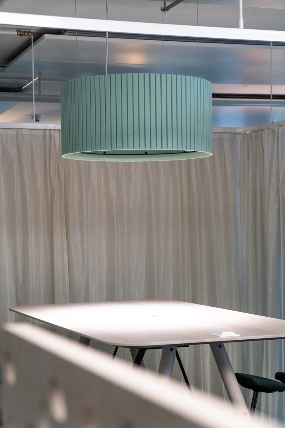 In line with team’s expectations to make workspaces feel like an extension of their homes, this acoustic lighting fixture achieves just that. The well-balanced geometric shapes contribute structure to a space and can easily be combined in different sizes to give the interior that little extra touch of cosy.