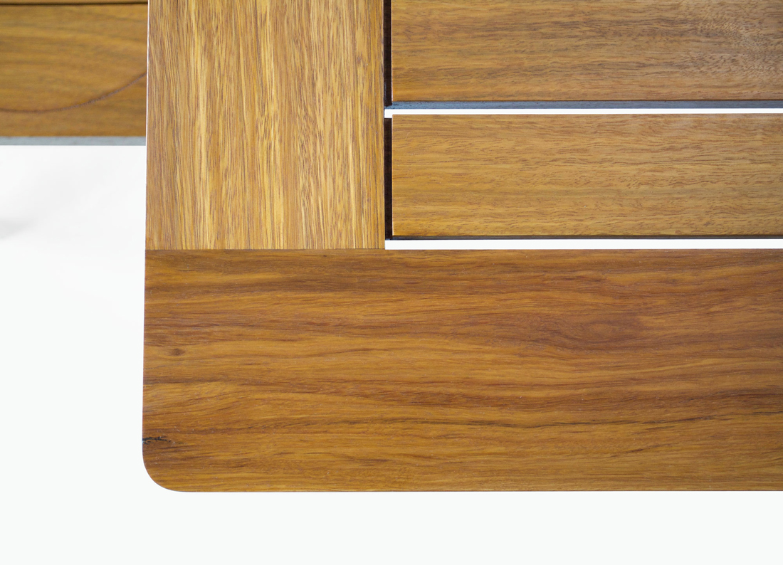 Inspired by the traditional butchers block this series combines the clean lines of mild steel legs, with spotted gum top for outdoor applications.