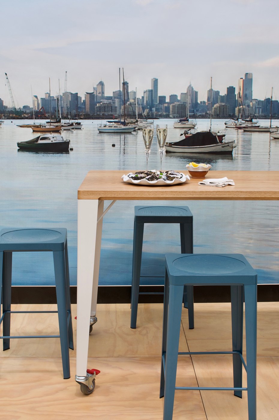 Inspired by the traditional butchers block this series combines the clean lines of mild steel legs.