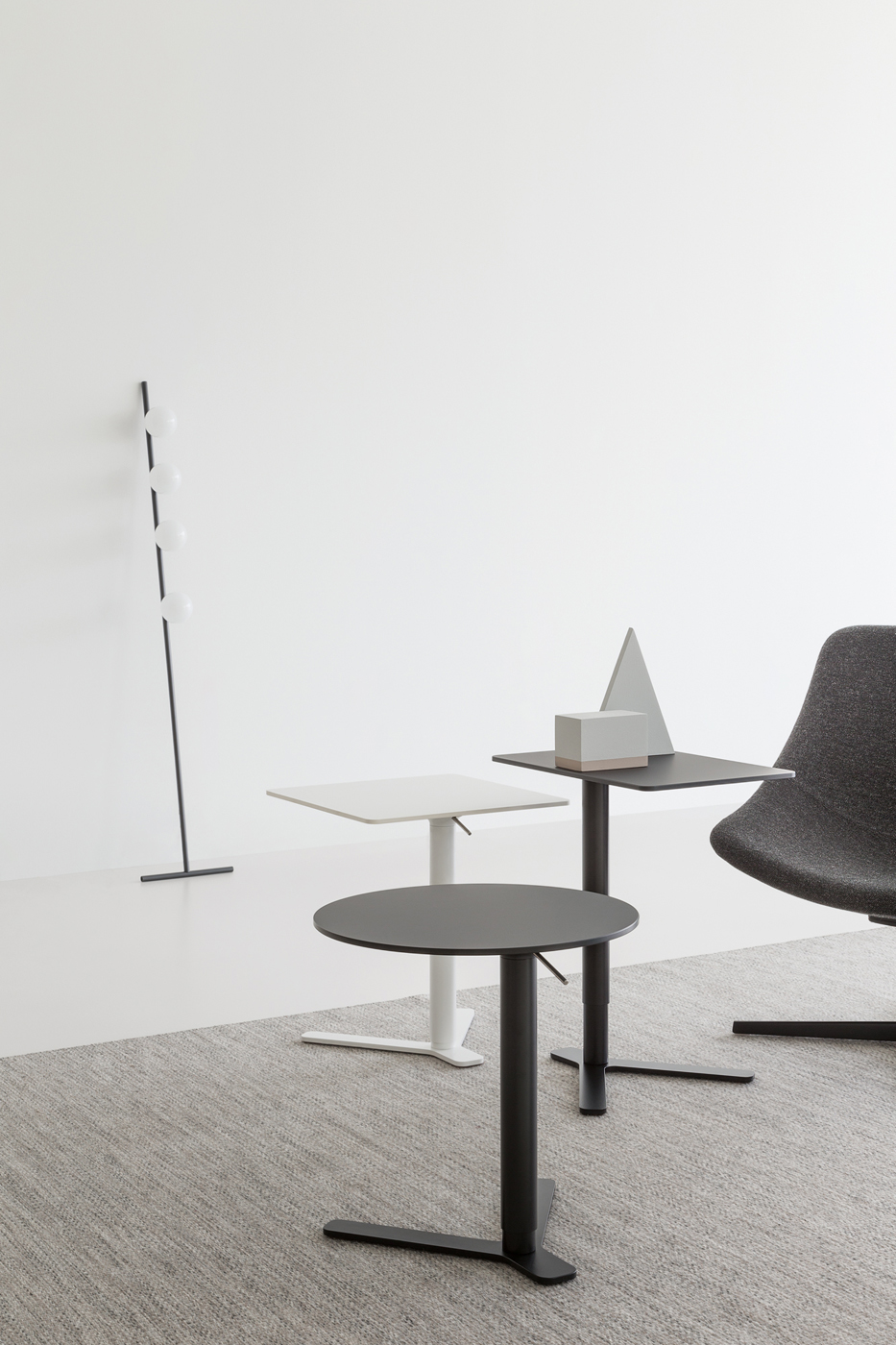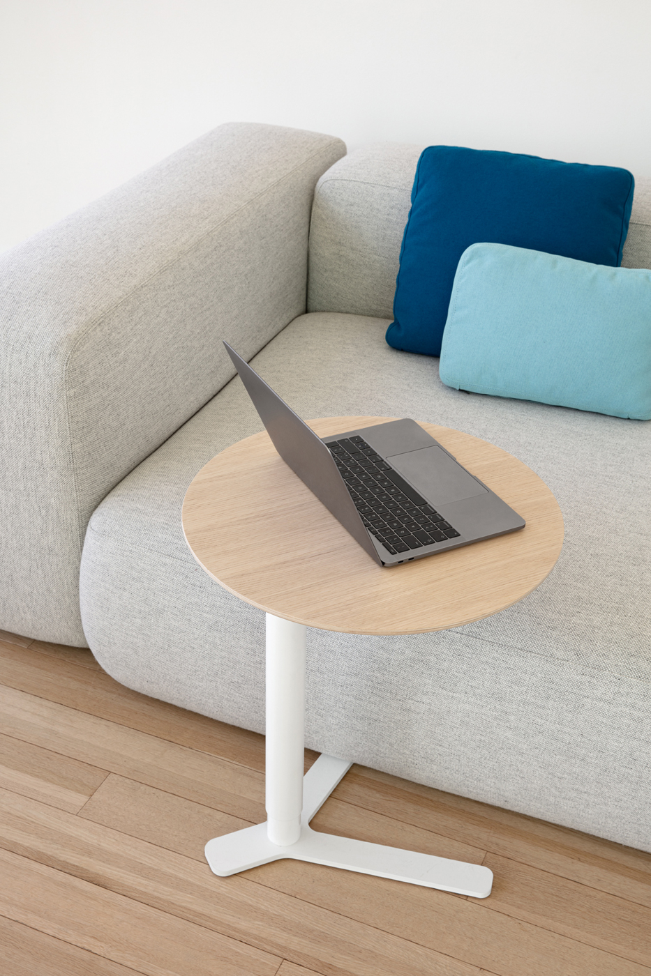 Yo is a height adjustable side table driven by clean lines and convenience. The table is suitable for lounge areas, placed next to sofas and armchairs for laptops, books or personal belongings.