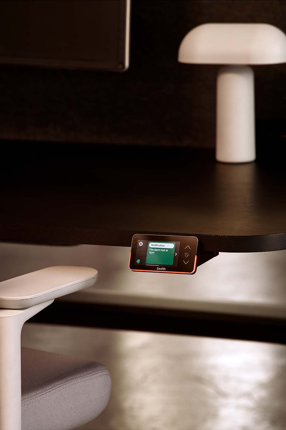 The floorsight handset is the ultimate sit-stand desk upgrade, providing comprehensive features and seamless integration with the floorsense ecosystem, all from a simple swap out, this multi-functional device combines desk booking, occupancy sensing, power control, height adjustment, and dynamic office notifications and reporting into one streamlined solution.