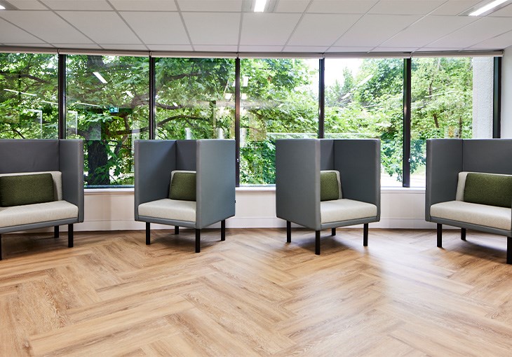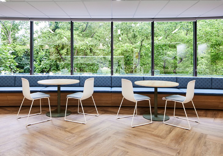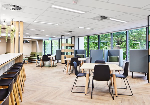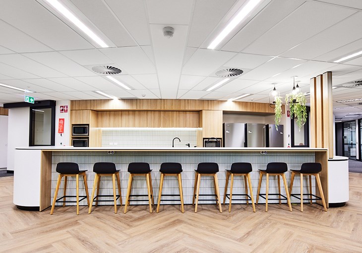 The new office fit out for Australian Medical Council is based in the heart of the city. Designed by DJAS and constructed by Projex Building, the circular building is designed to be collaborative. With various gathering spaces throughout the edges of both levels, staff can meet to collaborate such as in the Edo Teahouse, Kissen Tables and joinery booths. JAC chairs and stools, Disc Tables and Edo Lounges are scattered throughout the breakout area where staff meet, eat and relax. Orbis workstations and Vox task chairs are used throughout the private areas and open floorplan to provide staff with a more ergonomic and flexible area to suit their needs.