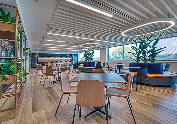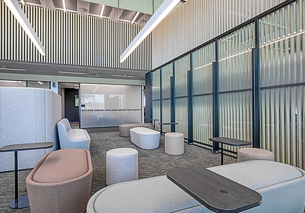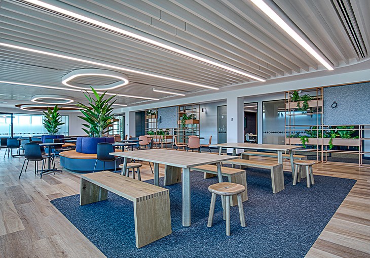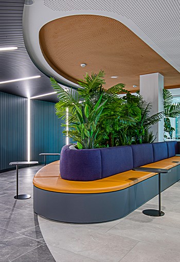 DTAC provides a dynamic and flexible workplace with dedicated spaces to showcase, inspire and support the development of Defence’s technology platforms with a focus on augmented reality. Referencing biophilic design principles, AMC’s interior design team has created an agile, free-flowing layout complemented by natural materials, greenery and feature lighting elements throughout.