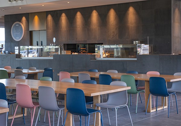 A major component of this project was the contribution to our JAC tree planting program which facilitated the planting of 725 Manuka Trees in the Pamoa Forest. Throughout the one-of-a-kind building Foodstuff North Island have JAC Stools and Side Chairs.