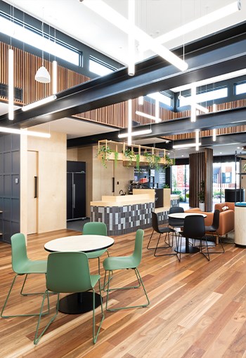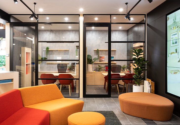 Mojo Homes Inspiration Centre for customers looking to purchase house and land packages through Mojo Homes. The design of the space allows customers to explore and research the home and purchase options through, face to face home consultants, physical and digital information points. The inspiration centre has café and seating areas, video presentation areas, semi private and private sales offices, kids play, external garden and a granny flat showcasing the interior design styling options for new homes. The new interior concept is carefully planned with the customer journey and path to purchase in mind. The interior design is created within a residential Mojo home building and the various interior finishes and materials have collaborated and work with the varying supplier relationships that Mojo Homes has established in the market place.