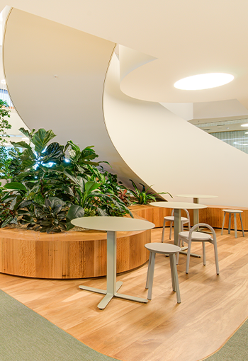 The design of the 38,000-square-metre workplace considered the future needs of Suncorp by engaging its business objectives to drive a resilient workplace culture – one that is robust in the face of shifting demands for hybrid working models. Flexible work settings, position collaboration and togetherness are at the heart of the Suncorp workday.