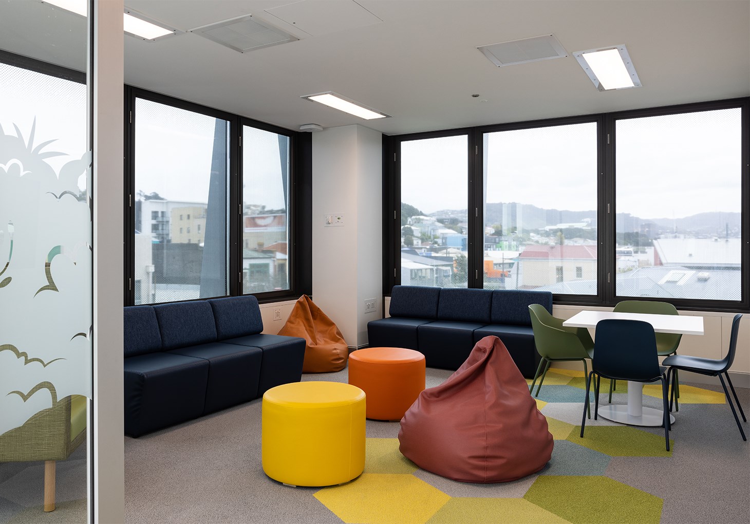 With a strong emphasis on hygiene and quality, we assisted with the selection and application of anti-microbial fabrics and surfaces for the furniture pieces supplied. Functionality and ‘ease of use’ were also at the forefront of the furniture selection process. A comforting colour palette in bold hues emphasised the important role furniture has in creating a welcoming, supportive and safe environment for tamariki, rangitahi and whānau.