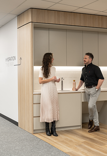 Zenith worked closely with Woods Bagot to design a hybrid workplace for flexible working, integrating Zenith Connect's desk booking system with Orbis electric adjust workstations and Smartalock locker systems.